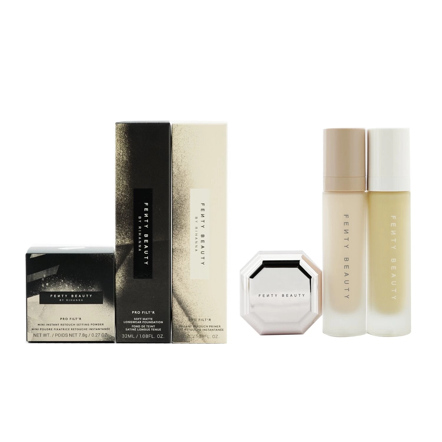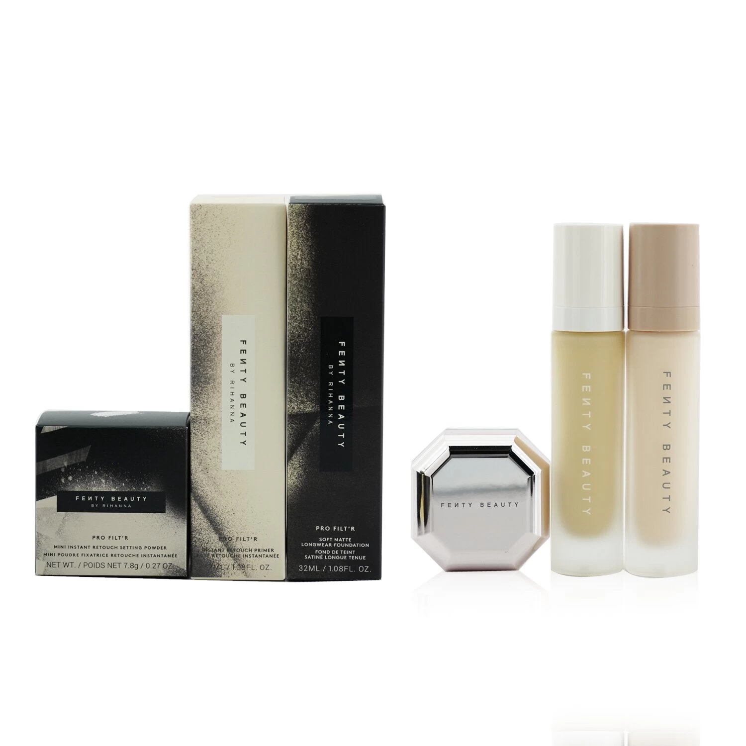SKU: ZNJLC 7001854738632 Category: Complexion Tags: Make Up, Makeup Sets, Price_$0-$100, Pro Filt'R Soft Matte Complexion Kit: Foundation + Primer + Instant Retouch Setting Powder, Range_Makeup Sets, Range_Pro Filt'R Soft Matte Complexion Kit: Foundation + Primer + Instant Retouch Setting Powder, Range_Sets & Coffrets, Sets & Coffrets, Special Purchase, Type_Make Up, Vendor_Fenty Beauty by Rihanna